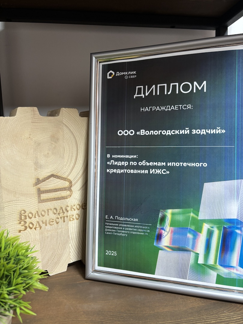 Компания «Вологодское Зодчество», специализирующаяся на строительстве загородных домов из клееного бруса в Северо-Западном регионе, снова подтвердила высокий статус на рынке индивидуального жилищного строительства. В 2025 году наша компания была удостоена почётного диплома от Домклик Сбер в номинации «Лидер по объёмам ипотечного кредитования ИЖС».